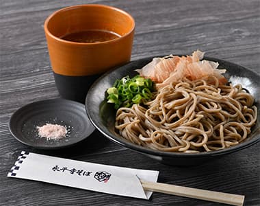 永平寺そば極の十割そばは、そば粉と水だけで打ち上げる純粋なそば。