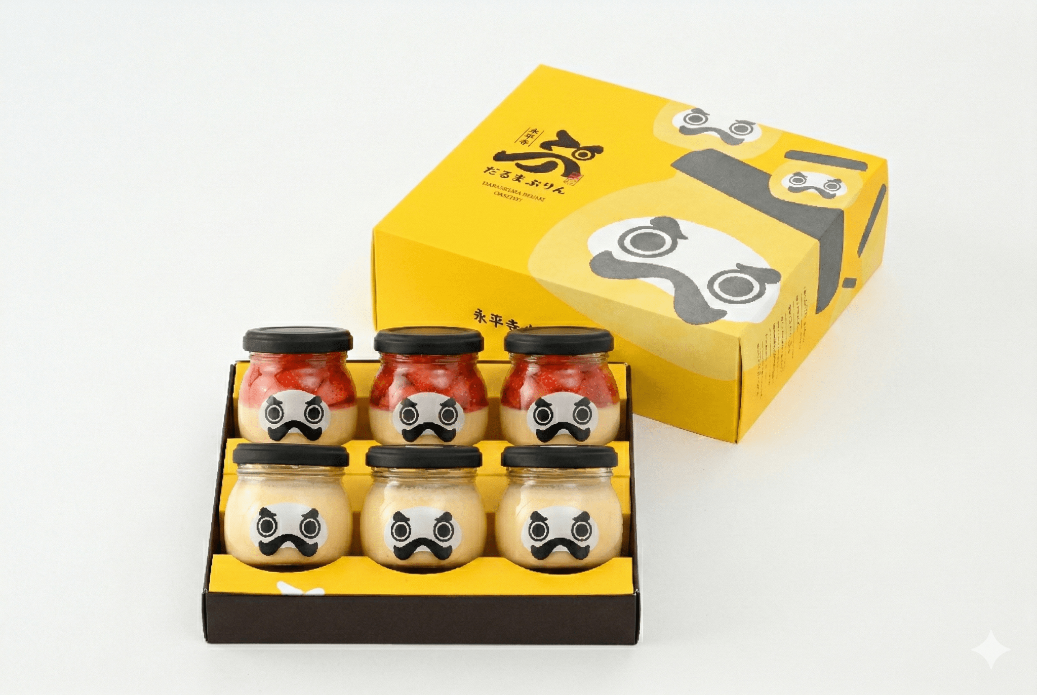日本一”縁起が良い”プリン、永平寺だるまぷりんのぷれーん、いちごぷりん各3個入りのセットです。